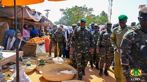 Niamey, 29 Janvier (ANP)- Le Président de la République du Niger, le Général d'Armée Abdourahamane Tiani a visité, ce jeudi 29 Janvier 2026 à Niamey, la foire des maraichers de la Région d'Agadez sise à la place du Petit Marché et le Palais du 29 Juillet où se déroule la première édition de l'opération de vente subventionnée du riz local, dénommée ''Spécial Ramadan''.