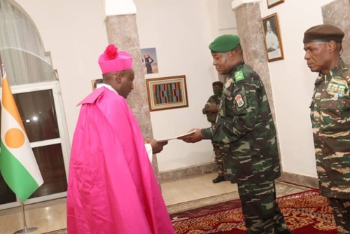 Le général d'armée Abdourahamane Tiani a également reçu les lettres de créance du Révérend Monseigneur Éric Soviguidi, Nonce Apostolique du Saint-Siège auprès de la République du Niger avec Résidence à Ouagadougou, et celle de M. Tomás Vyprachticky, Ambassadeur extraordinaire et plénipotentiaires de la République Tchèque auprès de la République du Niger, avec résidence à Abuja (Nigeria).