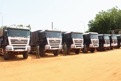 Ces nouveaux matériels sont constitués de camions de transports des troupes et citernes dont 24 destinés à la Garde et 9 à la police Nationale.