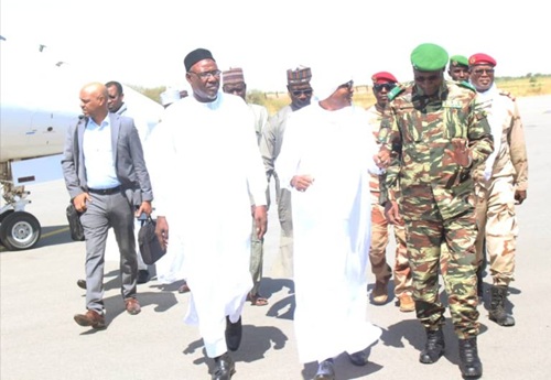 À leur descente d'avion à l'aéroport Mamadou Tandja de Diffa, les deux membres des gouvernements nigérien et tchadien ont été chaleureusement accueillis par le Gouverneur de la région de Diffa, le Général de Division Mahamadou Ibrahim Bagadoma, entouré des autorités administratives, municipales, coutumières, ainsi que des responsables régionaux des Forces de Défense et de Sécurité et des services techniques régionaux.
