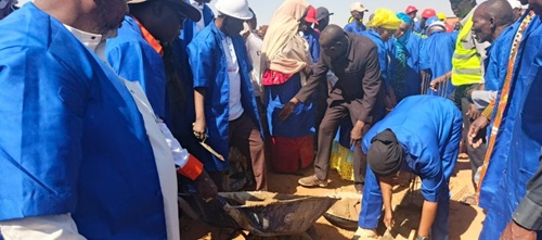 Dans une ambiance à la fois solennelle et citoyenne, le Ministre de l'Enseignement et de la Formation Techniques et Professionnels Pr Farmo Moumouni, revêtu d'une tenue de travail, a ensuite procédé à la pose de la première brique du mur de clôture du CFM de Dosso, marquant ainsi le lancement officiel des travaux. Il a été rejoint par l'ensemble des membres de sa délégation, également munis de tenues de travail, qui ont participé activement en préparant du ciment, manipulant les briques et apportant leur contribution physique.