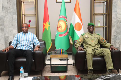 A son arrivée, il a eu un tête-à-tête au salon d'honneur de l'aéroport avec le Ministre d'Etat de la Défense Nationale nigérien avant de rejoindre son hôtel.